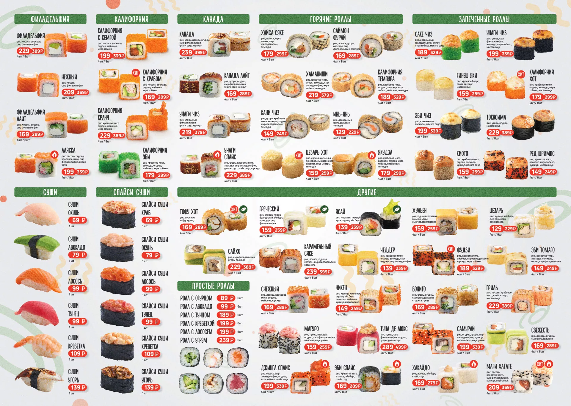 Оформление меню суши-бара «Roll Wok Club» в Трёхгорном