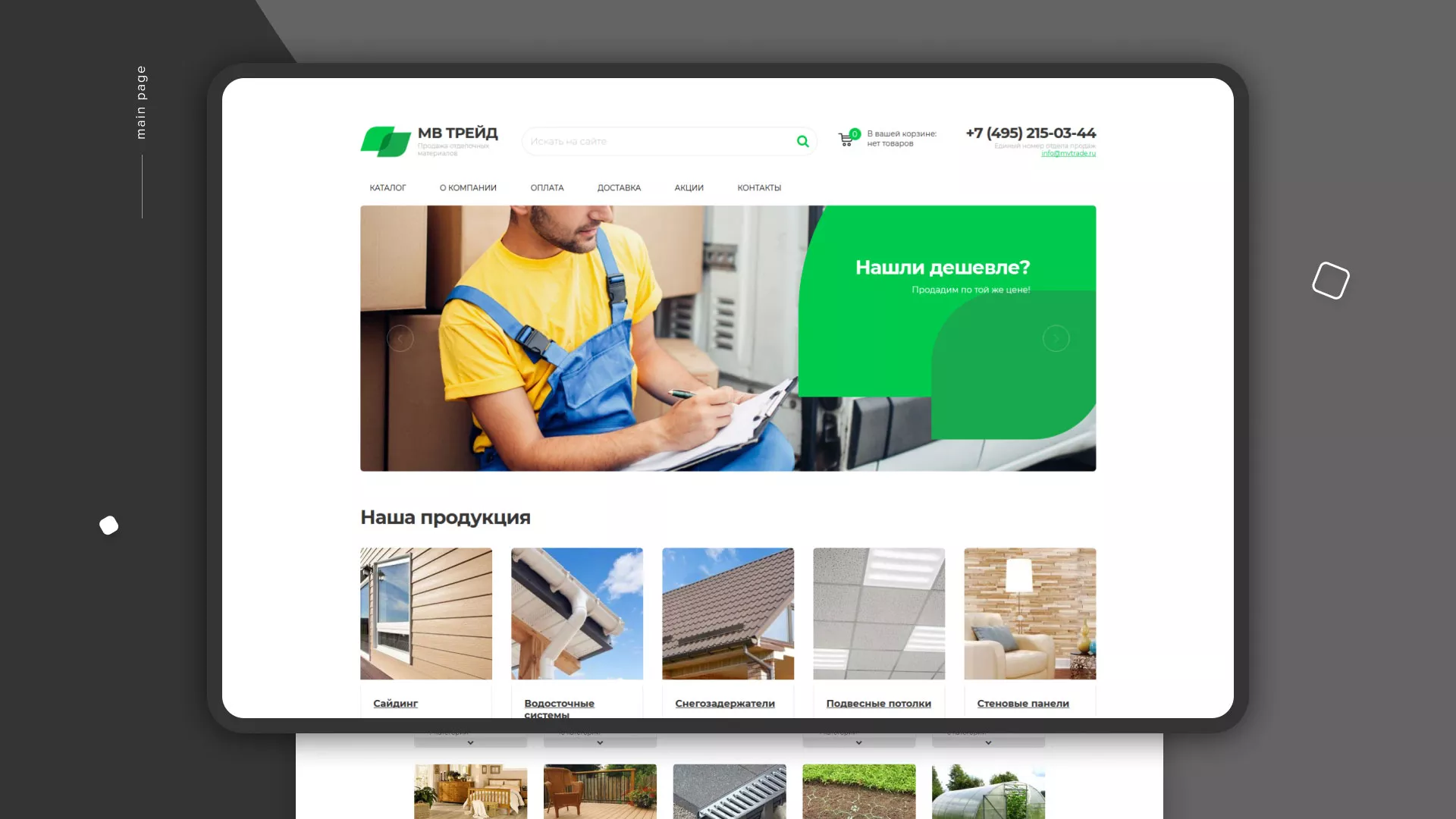 Компания «МВ Трейд» осуществляет продажу сайдинга и отделочных материалов через интернет со своих складов в Трёхгорном. За 17 лет компания зарекомендовала себя надежным поставщиком. Товары реализуются как оптом, так и в розницу.