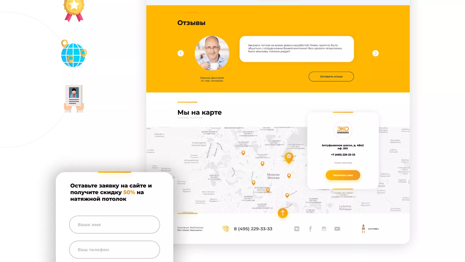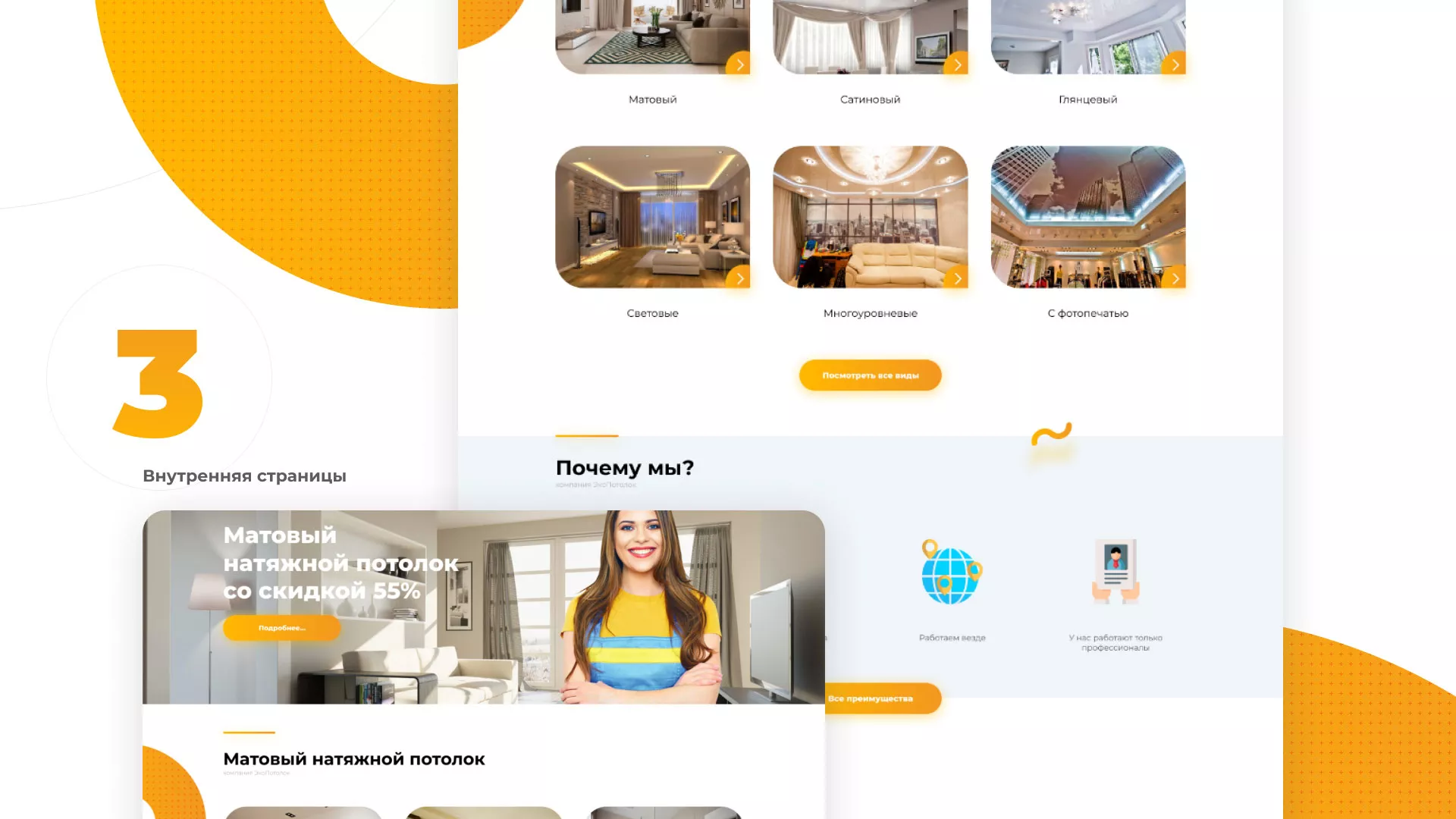 В нашем портфолио в Трёхгорном Вы можете найти большое количество вариантов готовых сайтов, среди которых есть и сайты по натяжным потолкам. Все проекты выполнены с учётом пожеланий заказчиков, многие из которых стали нашими друзьями.