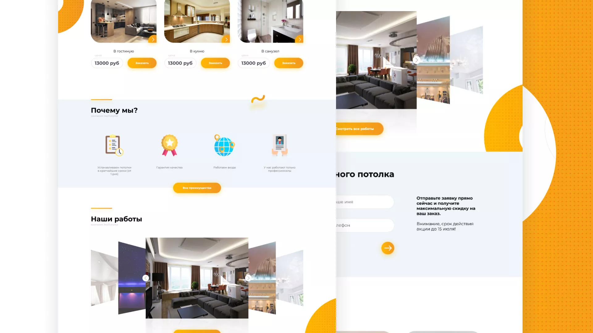 Вам нужна разработка сайта по натяжным потолкам в Трёхгорном? Специалисты компании «Мультзавод» готовы помочь! Мы предлагаем большой выбор уже готовых вариантов, а также можем создать и что-нибудь новое!